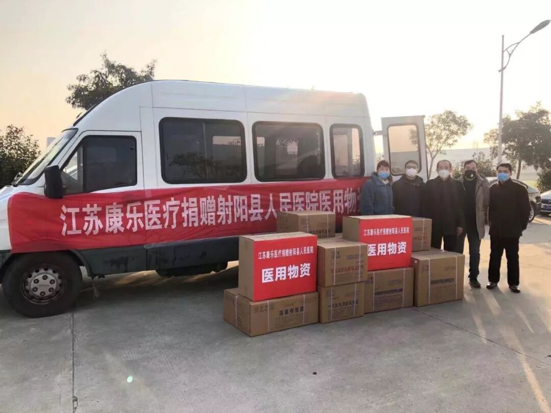 江苏省康乐医疗器械有限公司高级工程师韩恩希团队向射阳县人民医院捐赠1千只医用KN95口罩,1千套简易呼吸器,200套一次性输氧面罩200套等在内价值13万元的一批急需的医疗机械。