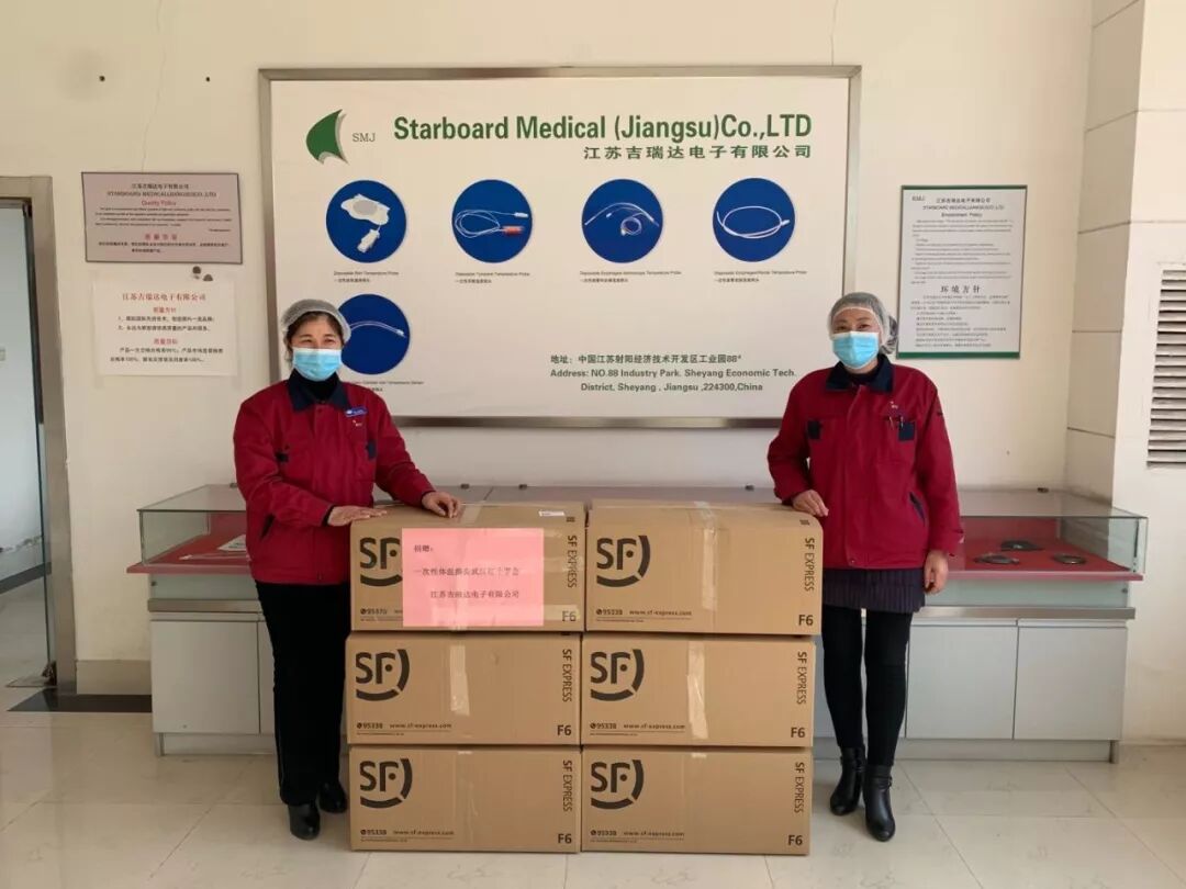 日前,位于江苏射阳经济开发区的国家高新技术企业—吉瑞达电子有限公司心系武汉疫区,在和武汉协和医院和金银潭医院取得联系的基础上,组织本地员工加班加点,紧急筹措了一批通过美国FDA和中国SFDA注册认证,与目前医院所用的监护仪都相配的1千只医用一次性皮肤温度传感器探头、1千只医用一次性耳道温度传感器探头在内的价值20多万元医疗设备,火速驰援武汉。该公司负责人、美国华人总商会副会长葛虎表示:“作为一名归国返乡创业者,平时党和政府不仅关心他的个人生活,还帮助企业渡过难关。在这个特殊时期,能够为国家做些力所能及的事,付出再多也值得”。