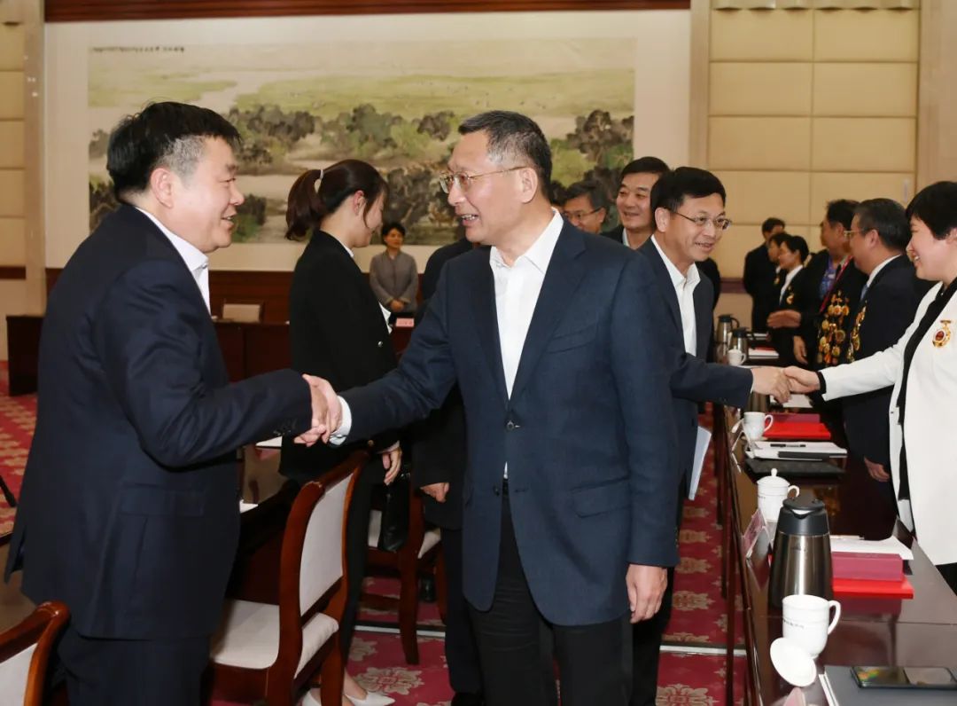 ▲市委书记戴源、市长曹路宝等领导和与会人员亲切握手