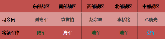 不难看出,国庆阅兵总指挥此番首次由空军将领担任,是这一轮军改破除以往“大陆军”体制的侧面写照。如果政知圈没记错,军改前我军原七大军区几乎未曾有非陆军出身的将领担任司令员。甚至在军改完成之初,东南西北中五大战区的首任司令员同样均出自陆军。如今,政知圈梳理发现,目前五大战区司令员中有两位并非出自陆军。