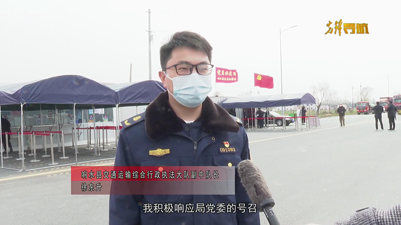 响水县交通运输综合行政执法大队副中队长 徐东升:我是一名党员,及时响应局党委的号召,积极投身到疫情防控第一线,参与24小时轮班值守,加大货运车辆的管控力度,同心筑牢抗疫防线,为疫情防控贡献自己的一份力量。