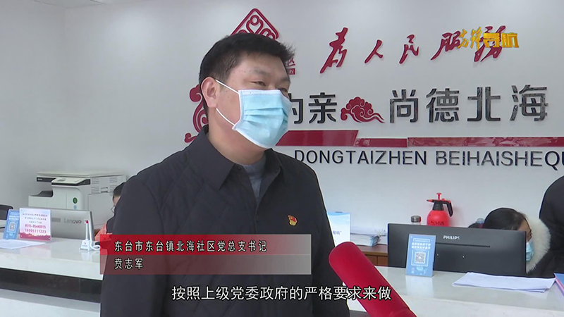 东台镇北海社区党总支书记 贲志军:党员干部必须冲在第一线,社区是疫情防控最前沿,这个时候我们党员干部不上,什么时候上?我们将按照上级党委政府的严格要求来做,查人控人找人,一个不落。