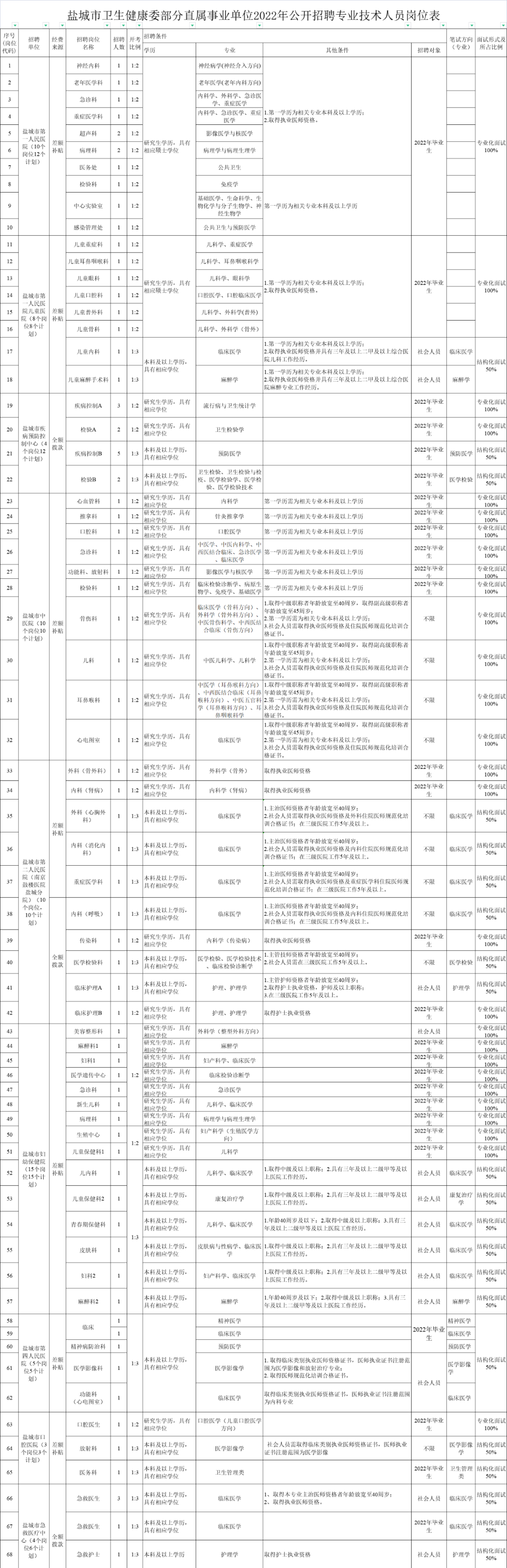 盐城市卫生健康委部分直属事业单位2022年公开招聘专业技术人员公告