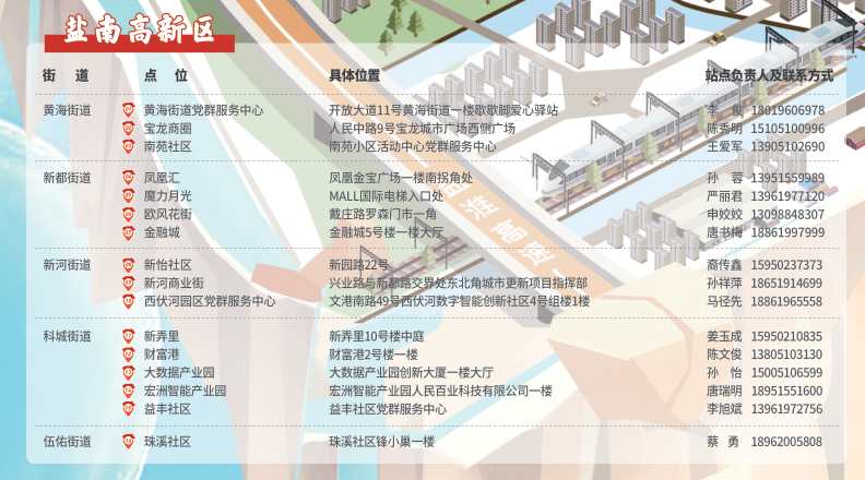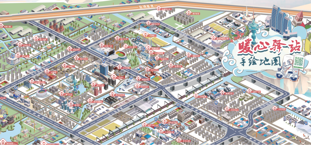 8月10日,区组织人事部组织各街道、区直相关部门,区外卖送餐行业党委等负责人,分别到宝龙广场和凤凰广场暖心驿站观摩,同时发布了“暖心驿站手绘地图”,地图涵盖了大市区50个“暖心驿站”,并附有驿站负责联系人电话和地图二维码。