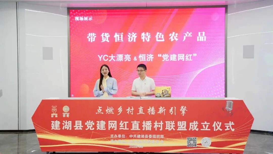 为推动中央和省市县委抓党建促乡村振兴的决策部署在建湖走实走深,日前,建湖县“党建网红”直播村联盟成立仪式在建湖县恒济镇建河村举行。“村里播,基地播,产地播;你来播,我来播,大家一起播……”,成立仪式在“党建网红”铿锵有力的呐喊中拉开序幕。