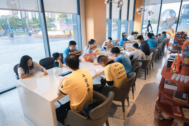 言+买书汇工作人员带领大家参观初心书屋,并对中国共产党的发展历程进行讲解。小朋友和大朋友们仔细阅读红色书籍,感悟其中蕴含着的红色文化和精神内涵。
