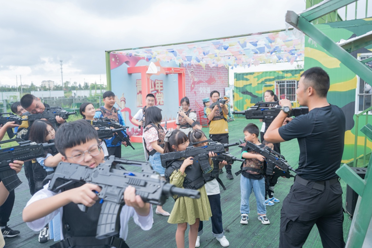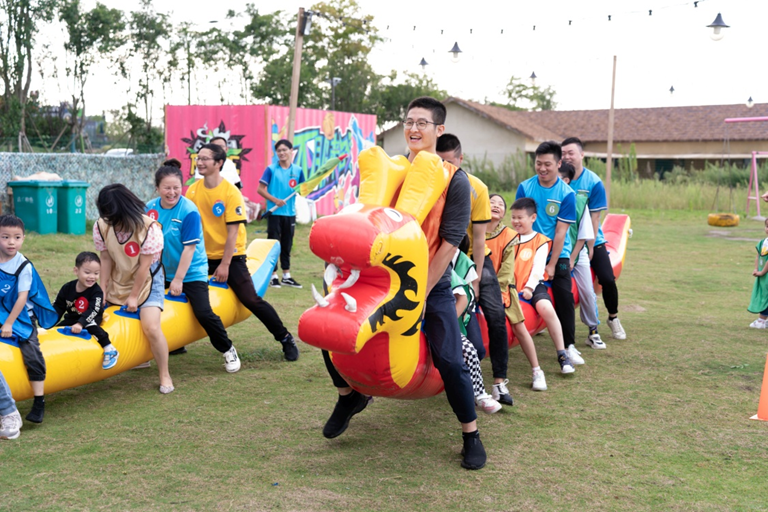 在工作人员的引导下,亲子合作大比拼正式开始,孩子们与家长配合默契,出色地完成了“蚂蚁搬家”“疯狂毛毛虫”“百变金箍棒”“真人CS”等互动游戏。