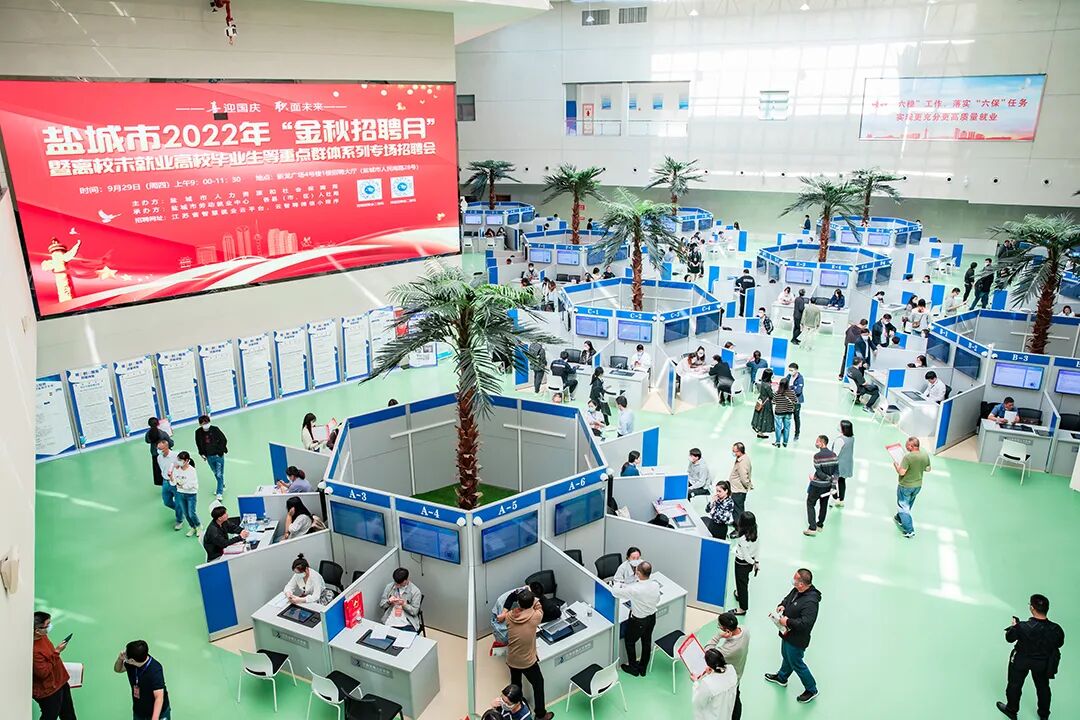 9月29日,盐城举办“喜迎国庆·职面未来”2022年“金秋招聘月”暨离校未就业高校毕业生等重点群体专场招聘会。市人力资源市场大厅、省智慧就业云、云智聘等平台线上线下、同步进行,呈现出供需高效匹配、“双向奔赴”的良好氛围。市委常委、组织部部长费坚到招聘现场视察指导。