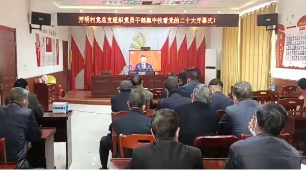 ▲射阳县四明镇开明村党总支组织党员集中收看党的二十大开幕会。