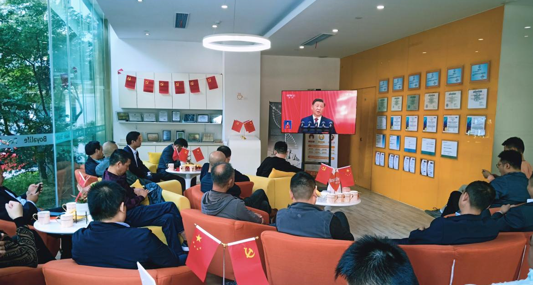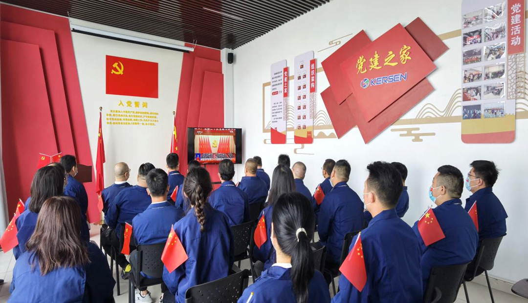 ▲科森科技东台有限公司党支部组织全体党员收看党的二十大开幕会。