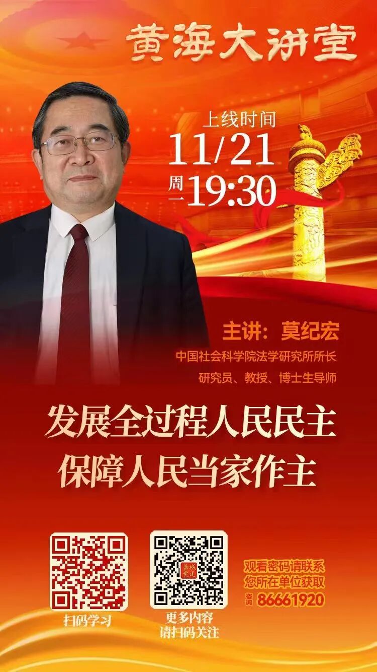 黄海大讲堂:发展全过程人民民主 保障人民当家作主 2022-11-21 16:01     来源:    作者:    浏览:990次