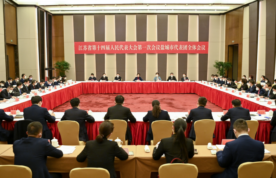 1月15日下午,省政协十三届一次会议主席团会议主持人张义珍来到她所在的省十四届人大一次会议盐城代表团,与代表们一起审议政府工作报告。盐城市代表团团长、市委书记徐缨主持会议。代表团副团长、市委副书记、市长周斌,代表团副团长、市人大常委会主任王荣等参加。省人大法制委员会副主任委员、省人大常委会法工委主任赵建阳,省委统战部常务副部长李国华,省人大常委会教科文卫委主任陆永泉等省人大代表参加审议。