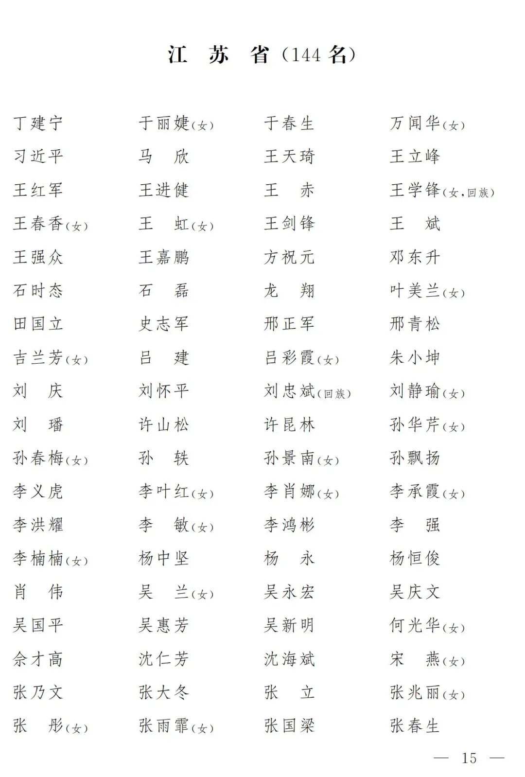 江苏144名全国人大代表将出席十四届全国人大一次会议(附名单)