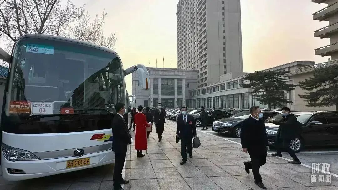 △2023年3月5日,江苏代表团乘车前往人民大会堂。