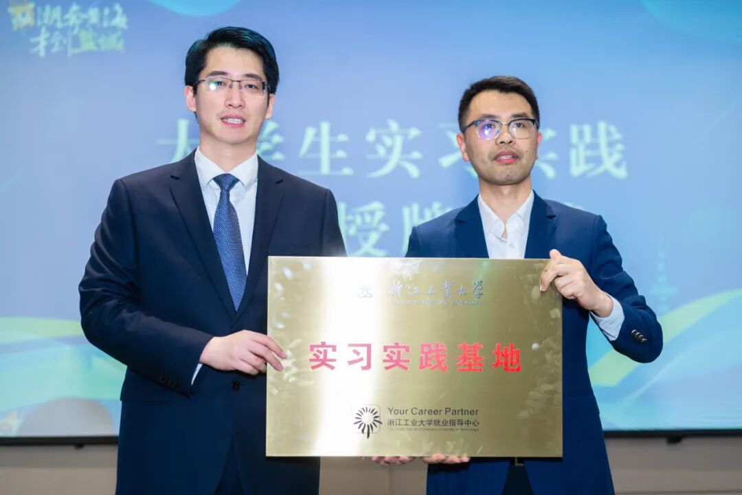 ▲图为浙江工业大学就业指导中心与共青团盐城市委共建实习实践基地授牌仪式