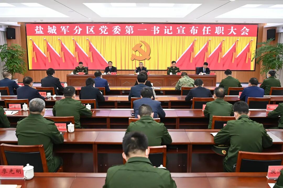 4月24日,盐城军分区举行党委第一书记宣布任职大会。省委常委、省军区少将政委张国成宣布省军区党委关于周斌同志任盐城军分区党委委员、常委、第一书记的决定,并颁发任职通知书。市委书记、盐城军分区党委第一书记周斌作表态发言。省军区政治工作局大校主任陈勇参加。
