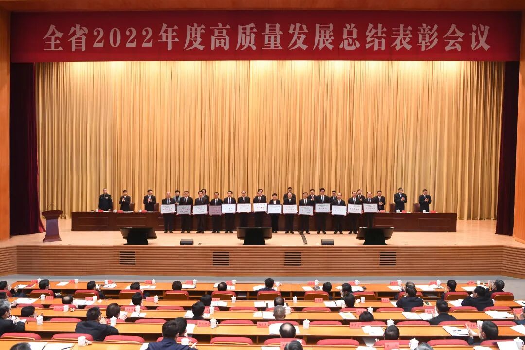 4月26日,省委、省政府召开全省2022年度高质量发展总结表彰会议。省委书记信长星出席会议并讲话,他强调,要深入学习贯彻习近平总书记重要讲话精神,完整准确全面贯彻新发展理念,把已经取得的成绩作为新的起跑线,始终保持“当表率、做示范、走在前”的果敢担当,在高质量发展道路上比学赶超、走在前列。省委副书记、省长许昆林主持会议。省政协主席张义珍、省委副书记邓修明出席会议。