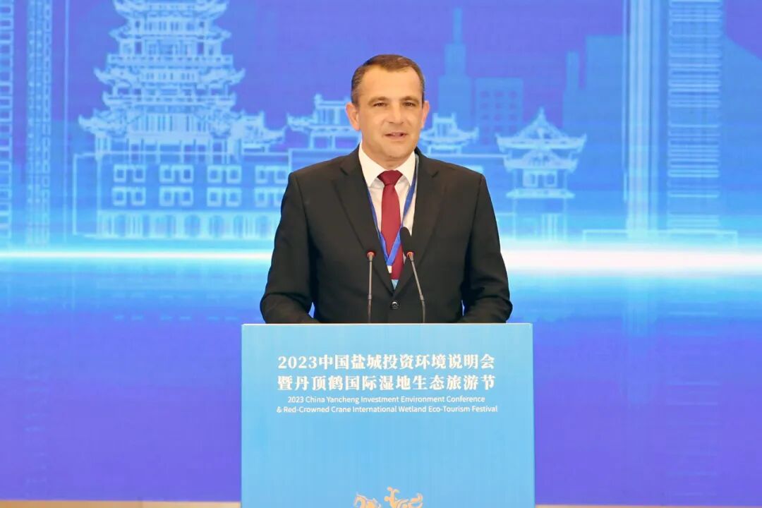 马蒂亚·波萨维奇代表克罗地亚梅吉穆列省向活动举办表示祝贺。他说,一年前的此时此刻,查科韦茨市和盐城签署了建立友城关系的协议。一年后的今天,作为查科韦茨市所在的梅吉穆列省省长,我来到这里祝贺盐城建市40周年,并且参加盐城投资环境说明会和丹顶鹤国际湿地生态旅游节的开幕式。希望以两座城市和两个地区间的合作推动克罗地亚和中国之间的合作。