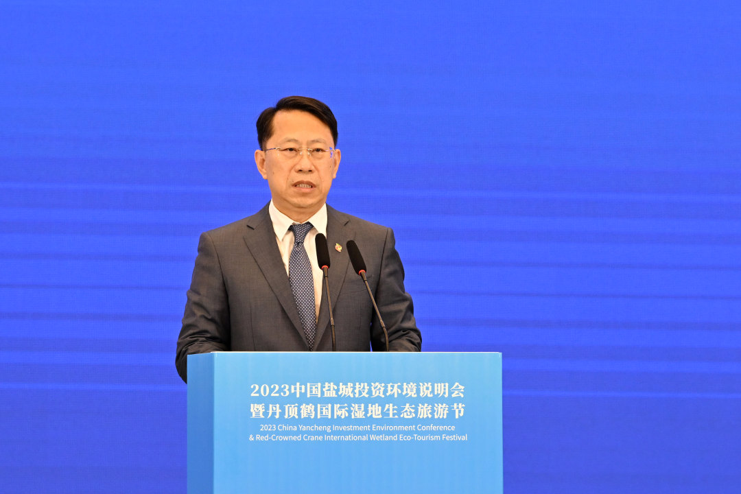 竞逐新赛道,奋进新时代,筑梦新盐城。5月18日上午,2023中国盐城投资环境说明会暨丹顶鹤国际湿地生态旅游节开幕。市委书记周斌出席并致辞,向海内外嘉宾推介盐城非常“6+1”比较优势、发出“四份邀请”。克罗地亚梅吉穆列省省长马蒂亚·波萨维奇、韩国驻上海总领事金英俊、省商务厅厅长陈涛、大韩贸易投资振兴公社中国区总代表洪彰杓分别致辞,市委副书记、代市长张明康作专题推介。省外办主任孙轶、中国能源研究会理事长史玉波、卢森堡驻上海总领馆代总领事石大伟、市人大常委会主任王荣等出席,市委副书记羊维达主持。