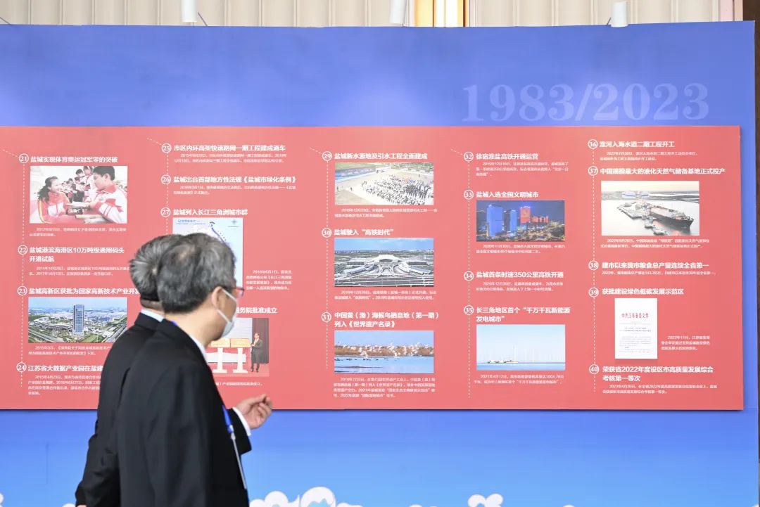 盐城荣获2022年度设区市高质量发展综合考核第一等次等反映建市40周年的40件事、见证城市沧桑巨变的老照片、呈现改革开放成就的数据图表、展现独特生态魅力的摄影作品……一串串跃动的数字、一幅幅珍贵的图片,吸引了周斌等市领导同志和与会嘉宾的目光,他们不时驻足观看,认真听取讲解,询问有关情况。