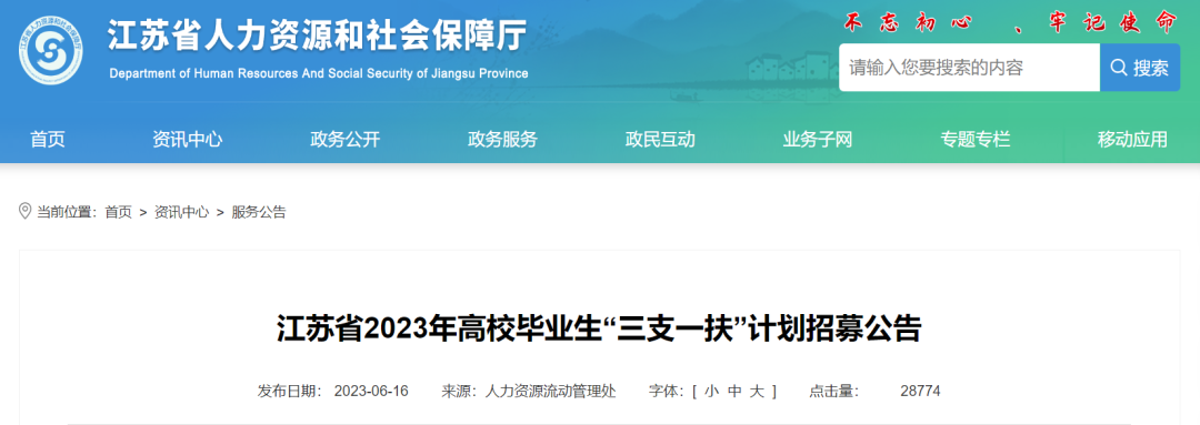 江苏省2023年高校毕业生“三支一扶”计划招募人数、对象、条件、政策待遇等可以通过以下网站查询: