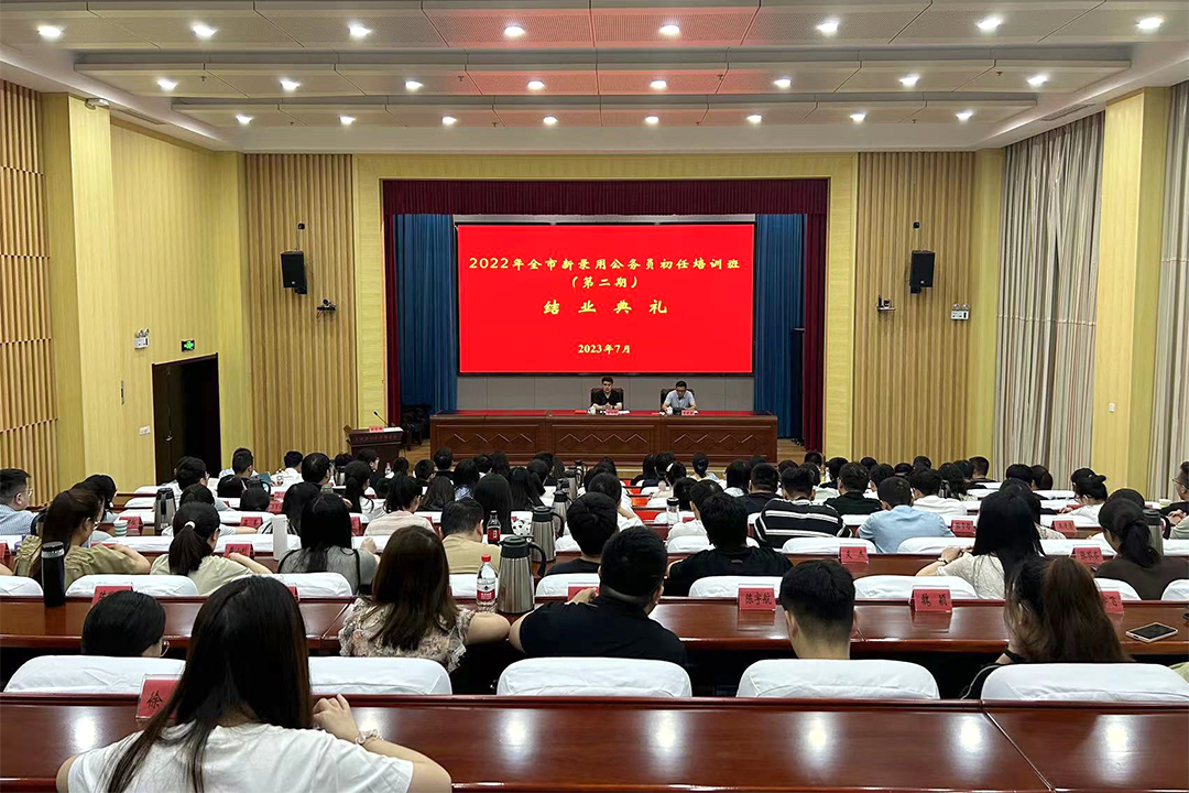 为贯彻习近平总书记关于加强干部源头培养和公务员队伍建设的重要指示精神,帮助全市新录用公务员走好职业生涯第一步,6月25日至7月30日,市委组织部在市委党校举办2022年全市新录用公务员初任培训班。市委组织部有关负责同志出席结业式并讲话。