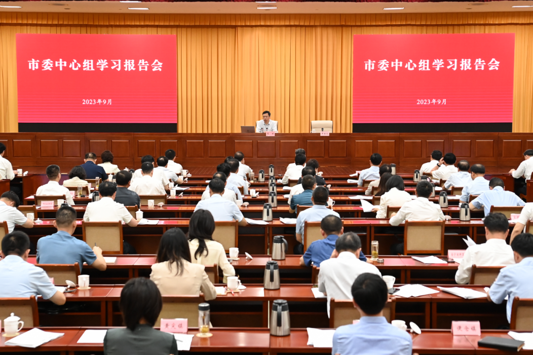 9月11日上午,市委中心组举行学习报告会,深入贯彻习近平总书记关于“三农”工作的重要论述和对江苏工作的重要指示精神,深刻把握“在推进农业现代化上走在前”的重大任务,高水平建设农业强市,加快打造农业强、农村美、农民富的新时代鱼米之乡。省委农办主任、省农业农村厅厅长季辉应邀作专题辅导。市委书记周斌,市委副书记、市长张明康参加学习。市委副书记、统战部部长羊维达主持报告会。