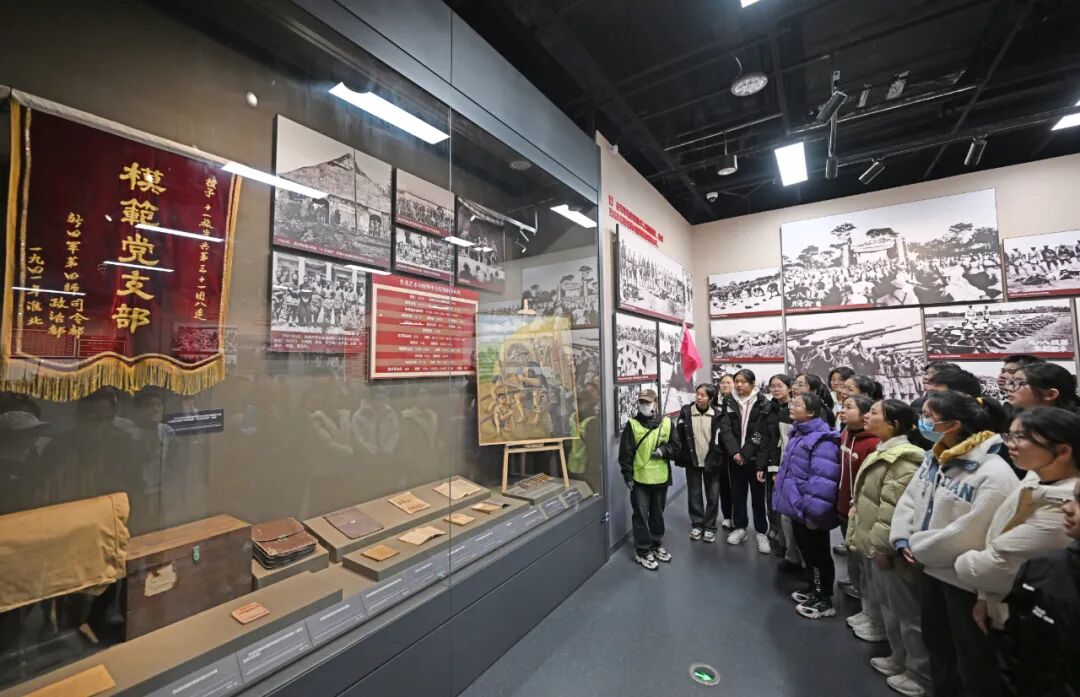 盐城市第一初级中学师生在新四军纪念馆参观,仔细了解鲁迅艺术学院华中分院的敌后抗战故事。记者 王亚洲 周晨阳 摄