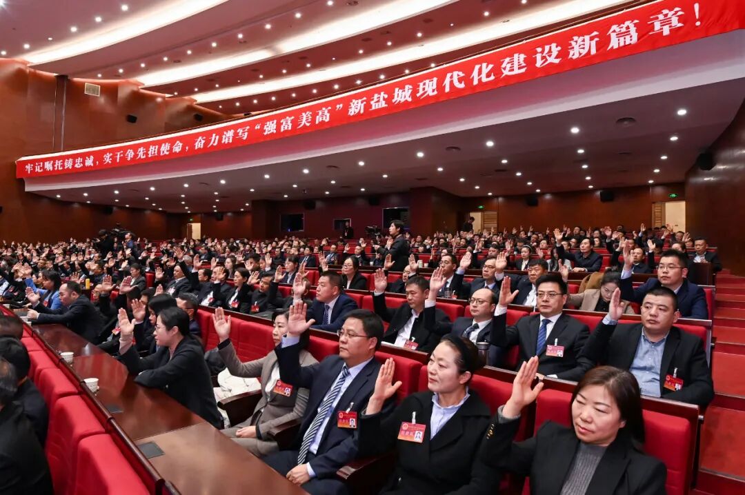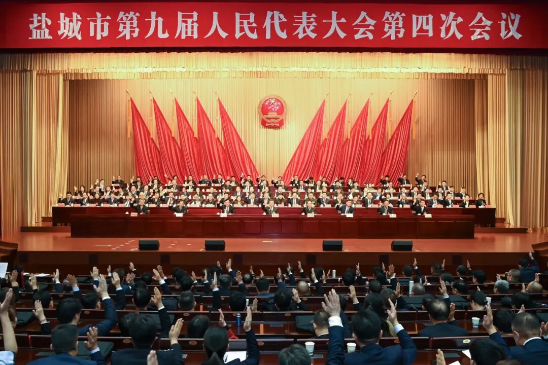 通过关于政府工作报告等七项决议及修改《盐城市制定地方性法规条例》的决定,宣布民生实事项目票决结果