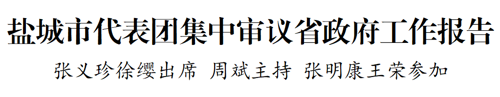 1月23日上午,江苏省第十四届人民代表大会第二次会议在江苏大会堂隆重开幕。当天下午,省政协党组书记、主席张义珍,副省长徐缨来到所在的省十四届人大二次会议盐城市代表团,与代表们一起审议政府工作报告。盐城市代表团团长、市委书记周斌主持会议。市委副书记、市长张明康,市人大常委会主任王荣等参加。省人大教科文卫委主任委员陆永泉,省人大民宗侨外委主任委员李国华,省人大法制委员会副主任委员、省人大常委会法工委主任赵建阳等省人大代表参加审议。