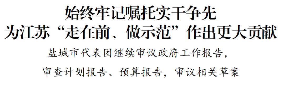 在认真审议报告、计划、草案的同时,代表们对盐城经济社会发展提出许多中肯的建议。冯瑞代表建议盐城深入学习领会习近平总书记关于耕地保护和粮食安全的重要论述,总结提炼更多好的经验做法,奋力谱写农业大市向农业强市跨越新篇章。袁训来代表建议盐城深入践行“绿水青山就是金山银山”的发展理念,充分发挥生态优势,加快建设绿色低碳发展示范区。赵震代表建议盐城进一步挖掘文化资源禀赋,加强公共文化场馆建设,充分发挥领军人才辐射作用,活化盐城红色基因,不断提升城市文化底蕴。