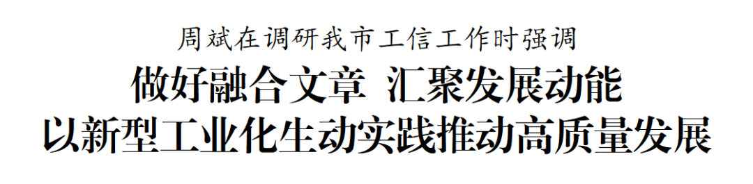 周斌指出,推进新型工业化是一项复杂的系统工程,事关发展全局、事关盐城未来。各相关部门要做好“管理+服务”文章,进一步构建统筹有力、协调有序的工作体系,强化精准有力、一诺千金的政策服务,做到上下“拧成一股绳”、内外“聚成一股劲”,进一步激发全市上下投身抓工业、促发展热潮的积极性和创造性。