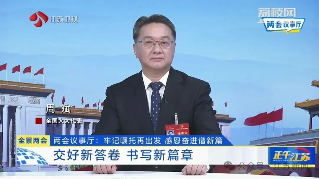 3月6日,江苏省广播电视总台全国两会特别报道《两会议事厅》采访全国人大代表、盐城市委书记周斌。