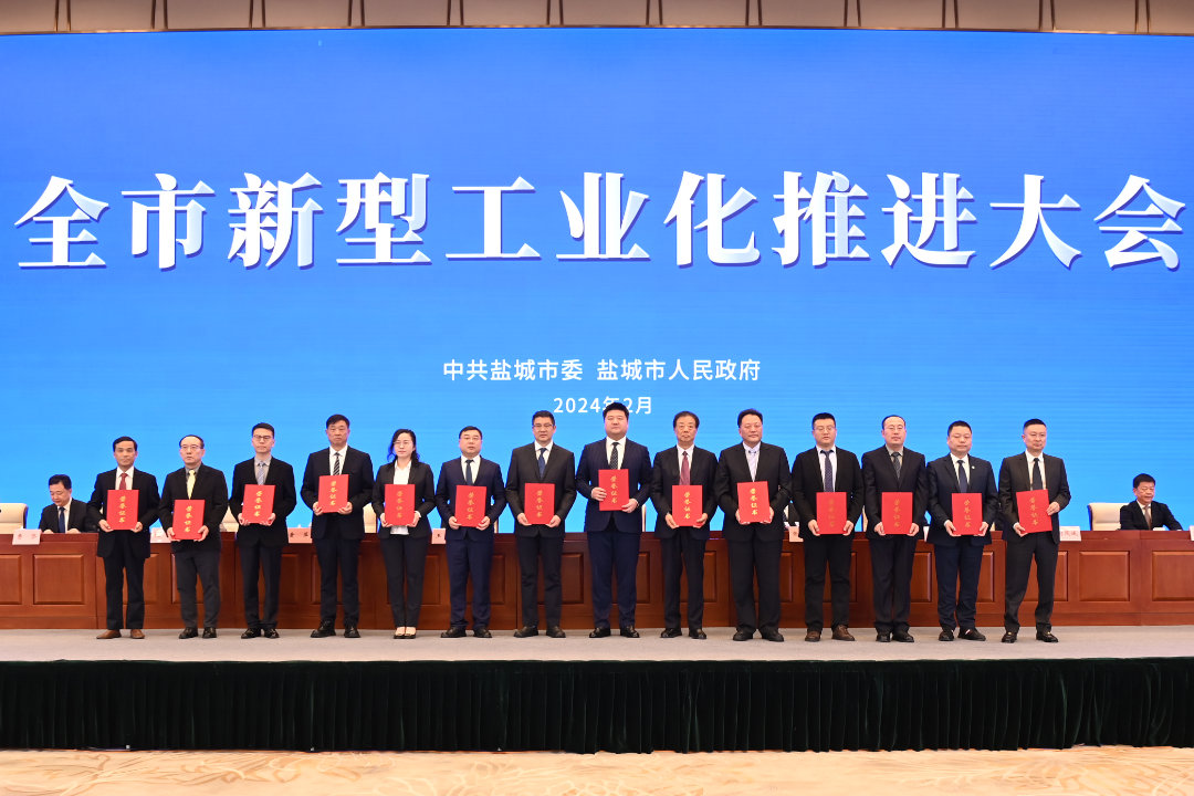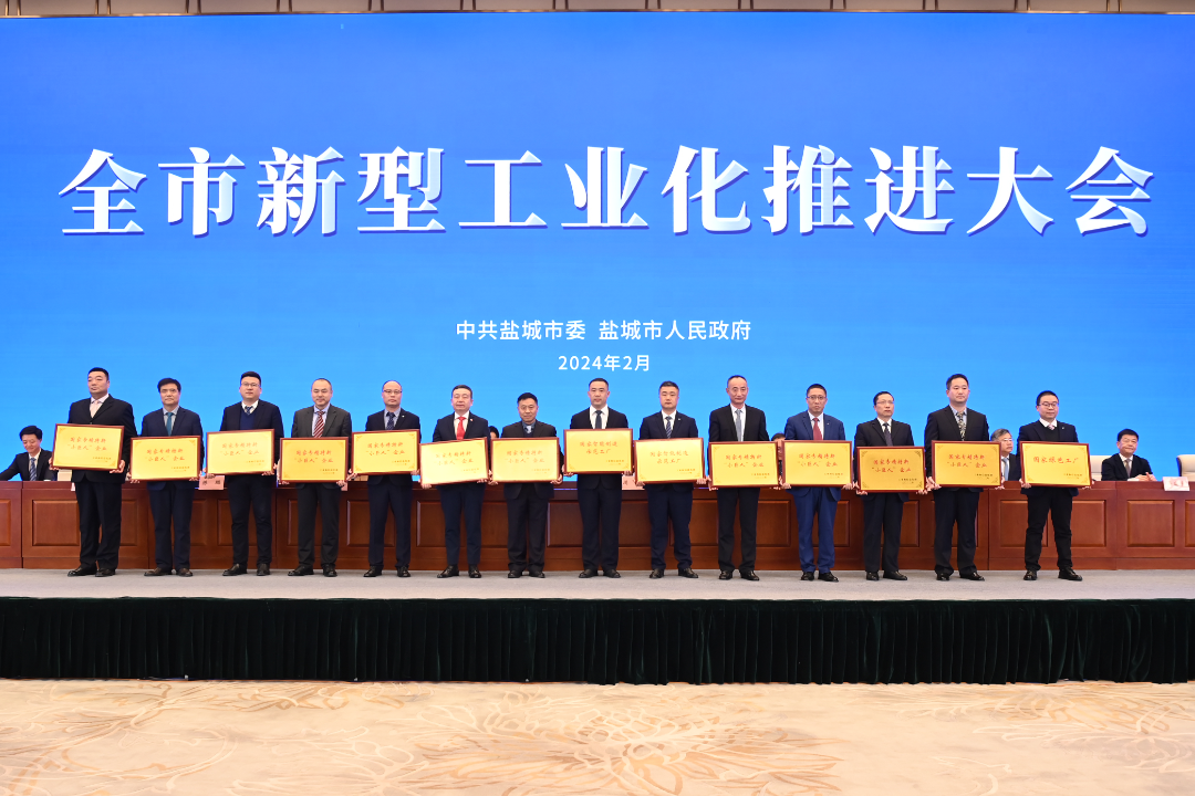开春就是开工,开工就要实干。会议邀请我市重点企业负责人参加,并为特别贡献优胜企业、工业五星企业代表,杰出企业家、优秀企业家代表,新获评国家智能示范工厂、国家专精特新“小巨人”企业、国家绿色工厂代表授牌颁奖,印发了关于加快推进新型工业化的实施意见、盐城市专精特新企业培育三年行动计划等文件并作解读。会前,与会同志参观了盐城新型工业化成果展。