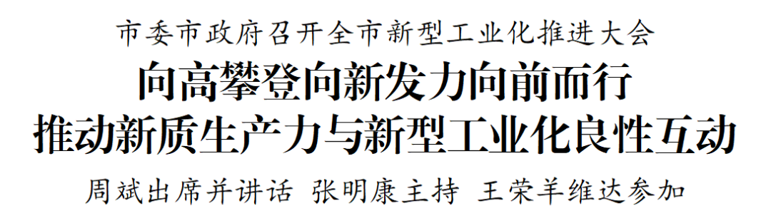2月18日,春节后第一个工作日,市委、市政府召开全市新型工业化推进大会,深入学习贯彻习近平总书记关于新型工业化的重要论述和对江苏工作重要讲话、来盐城考察重要指示精神,认真落实全国、全省新型工业化推进大会部署,以“新春第一会”的昂扬姿态,吹响加力提速工业经济高质量发展“冲锋号”,展现我市大抓工业、大抓产业、大抓项目的鲜明导向,彰显加快推进新型工业化,培育新质生产力的坚定决心。市委书记周斌出席会议并讲话,市委副书记、市长张明康主持会议,市人大常委会主任王荣、市政协主席羊维达参加。省工业和信息化厅副厅长黄萍到会指导并讲话。