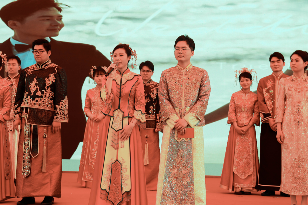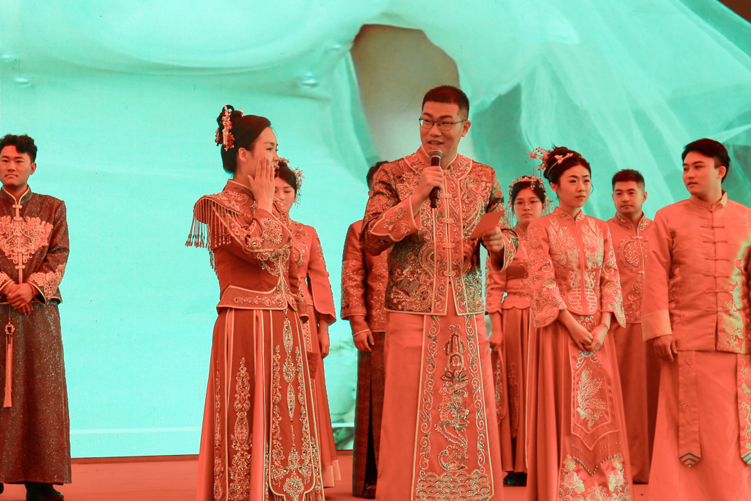 分别毕业于东南大学和同济大学的胡敏琦、刘力坤,以及毕业于江苏海洋大学的周霖、毕业于英国纽卡斯尔大学的龙腾宇,这2对新人代表向大家分享了“在盐城相知、在盐城相守”的浪漫故事。