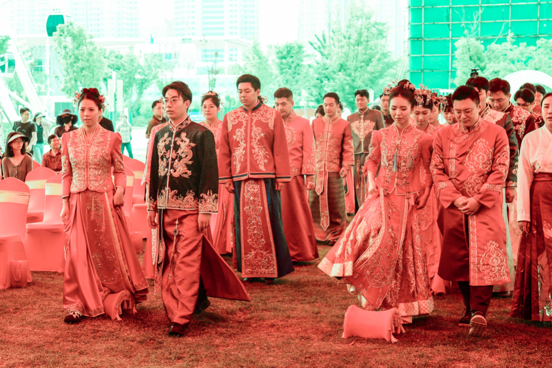 新人们进行了迈火盆、跨马鞍、合卺酒、三拜之礼、签订婚书等中式婚礼仪式,幸福与甜蜜汇聚交融。
