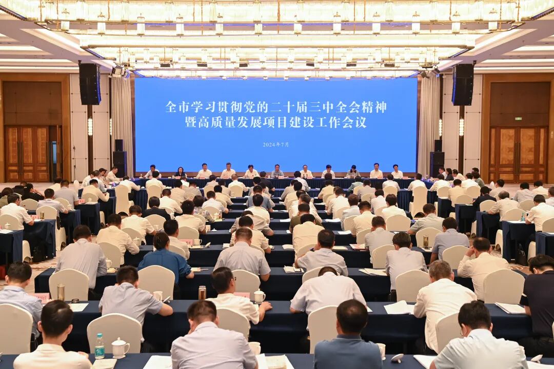 7月23日至24日,全市学习贯彻党的二十届三中全会精神暨高质量发展项目建设工作会议召开,传达学习贯彻党的二十届三中全会精神,盘点上半年经济工作,分析研判经济运行形势,部署下半年重点工作,一着不让推进项目建设。市委书记周斌主持会议并讲话。他强调,全市上下要用党的二十届三中全会精神统一思想、统一意志、统一行动,认真落实省委常委会部署,锚定勇当发展新质生产力重要阵地“碳路先锋”定位,坚定信心、鼓足干劲,发扬改革创新精神,聚合项目攻坚之力,持续巩固和增强经济回升向好态势,坚定不移实现全年经济社会发展目标争取更好结果,努力为全省发展大局多作贡献。市委副书记、市长张明康作工作部署,市人大常委会主任王荣、市政协主席羊维达参加。