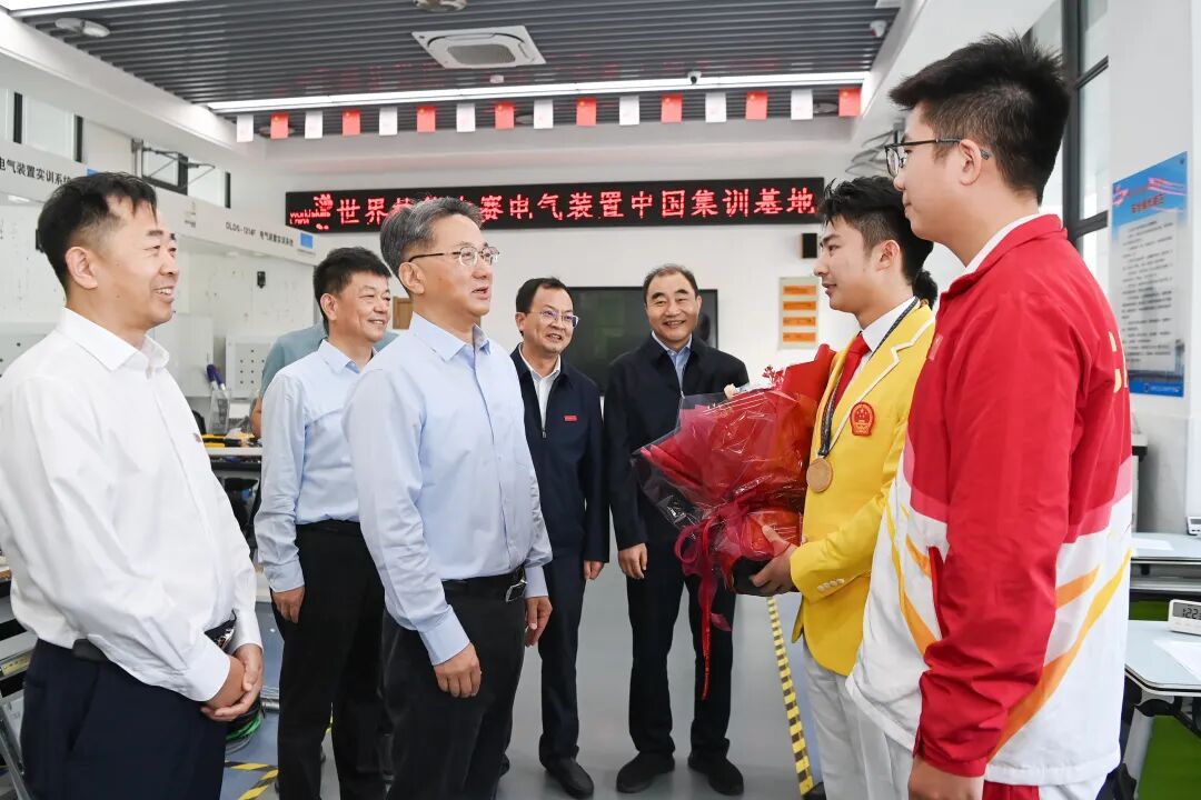 在日前举行的第47届世界技能大赛上,盐城技师学院选手赵智俊勇夺电气装置项目金牌。周斌来到学院看望赵智俊和教练团队,向他们表示热烈祝贺,感谢大家为国家争光、为盐城添彩。周斌说,赵智俊刻苦训练、深入钻研,练就过硬本领、取得比赛佳绩,给广大技能人才和职业教育工作者以振奋,全市人民为你们骄傲和自豪。看到世界技能大赛电气装置项目中国集训基地里,一群朝气蓬勃的学生正在苦练追梦,周斌详细了解训练备赛、技术创新等情况,希望学院弘扬光荣传统,总结比赛经验,发挥传帮带作用,培养更多金牌选手,让技能人才成就不一样的人生精彩。要立足盐城产业发展,拓宽办学思路,推进产教融合,培养更多大国工匠,为推进中国式现代化盐城新实践提供坚实人才支撑。