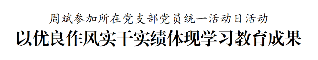 周斌强调,要坚持以学为先,将个人自学与集中学习相结合,原原本本研读《习近平关于加强党的作风建设论述摘编》和习近平总书记重要讲话重要指示批示精神,搞清楚该做什么、不该做什么,能做什么、不能做什么,在深钻细研中悟真谛。要坚持以查为基,自觉把自己摆进去,既要找共性问题、也要找个性问题,既要查作风问题、也要查思想根源,结合典型案例加强警示教育,在把脉问诊中动真格。要坚持以改为重,把上级列出的重点问题和自己查找的问题结合起来,逐项制定整改措施,积极接受群众监督评判,在精准施治中出真招。要坚持以实为要,不搞花样翻新,不搞繁琐哲学,不搞形式化、套路化、表面化,防止“低级红”“高级黑”,在知行合一中下真功。要坚持以干为本,大力弘扬不怕困难、不畏艰险,勇于斗争、敢于胜利的精神,坚定信心、精准施策,全力抓好推进高质量发展各项重点工作,在善作善成中创真绩。