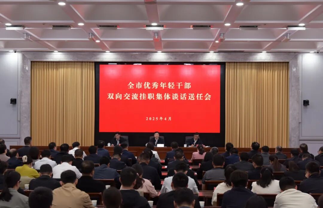 4月24日,我市召开优秀年轻干部双向交流挂职集体谈话送任会。60名来自县(市、区)、市级机关、市属企事业单位等不同领域和不同行业的年轻干部,即将奔赴产业发展、项目建设、乡村振兴、信访稳定等经济和民生一线实践锻炼,在新环境、新岗位、新角色中提升本领、增长才干。市委常委、组织部部长黄华出席会议并讲话。
