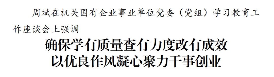 座谈会上,相关市直单位党委(党组)主要负责同志聚焦主题,分别汇报学习教育工作开展情况和下一步打算。周斌认真听取汇报,肯定工作成绩,指出问题不足,并与大家一起系统学习习近平总书记对学习教育工作作出的一系列重要讲话和重要指示精神,以及《党的十八大以来深入贯彻中央八项规定精神的成效和经验》等,要求提高政治站位,紧扣学习教育目标要求,坚决落实各项工作安排,在一体推进学查改上聚力用劲,确保学有质量、查有力度、改有成效。