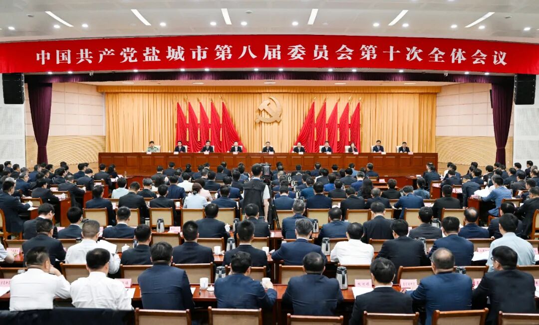 5月30日,中国共产党盐城市第八届委员会第十次全体会议召开。全会坚持以习近平新时代中国特色社会主义思想为指导,全面贯彻党的二十大和二十届二中、三中全会精神,按照省委十四届九次全会部署要求,对深入学习贯彻习近平总书记参加今年全国人代会江苏代表团审议时的重要讲话精神进行部署,动员全市上下牢记嘱托、感恩奋进,坚定扛好勇挑大梁政治责任,为全国全省发展大局多作贡献。