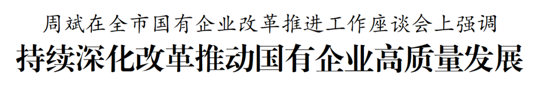 周斌强调,今年是国企改革深化提升行动的决胜之年,要坚持深化改革不停步,坚持问题导向,紧盯薄弱环节,精准发力、持续用力,推动国资国企改革发展取得新进展。明晰功能定位,聚焦高质量发展主题,做好勇挑大梁、服务民生、扩大利润等工作,在增强国企核心竞争力上取得新突破。优化国资布局,做好资源整合,加快新兴产业布局,加强存量资产盘活,在增强国企产业引领力上取得新突破。健全治理体系,提升企业市场化经营、科技创新、现代治理水平,在增强国企发展新活力上取得新突破。坚持底线思维,严防债务风险、内部风险、安全风险,在增强国企抗风险能力上取得新突破。