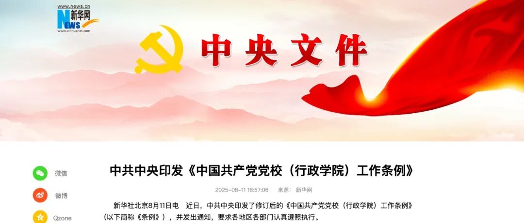 近日,中共中央印发了修订后的《中国共产党党校(行政学院)工作条例》,并发出通知,要求各地区各部门认真遵照执行。