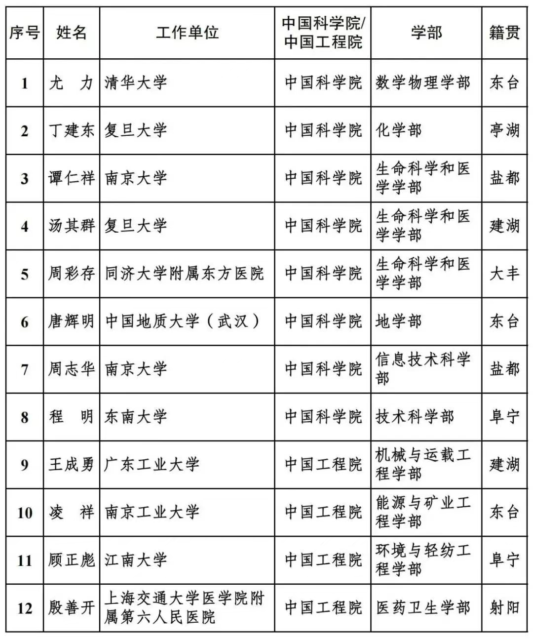 据了解,有12位候选人来自盐城,其中,中国科学院8人,中国工程院4人。
