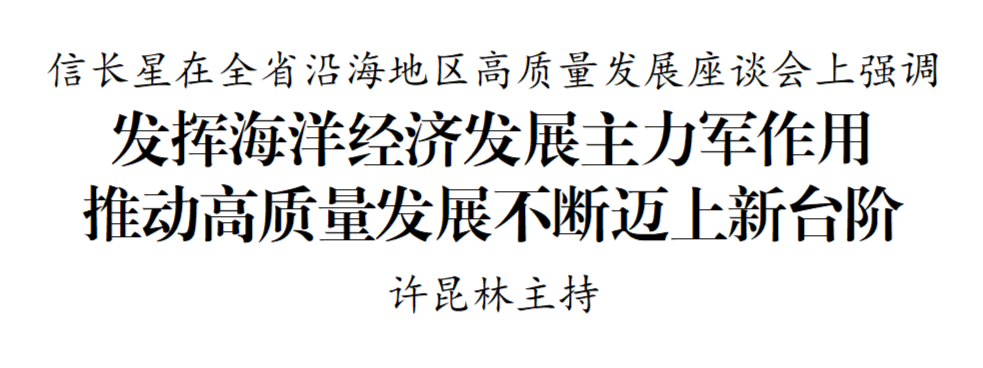 信长星强调,要更大力度推动科技创新和产业创新深度融合,聚焦有潜力、有比较优势的领域,加快集聚和培育壮大科技力量,推动产业高端化、智能化、绿色化发展,引导高校院所和企业做好“海洋+”和“+海洋”文章,让沿海地区成为海洋经济领域的科技成果转化“试验场”、产业迭代升级“新引擎”。要持续放大绿色低碳发展优势,深入践行“两山”理念,协同推进降碳、减污、扩绿、增长,着力解决生态环境突出问题,深挖绿电资源开发利用潜力,打造一批零碳园区、绿色工厂,创新旅游产品和服务供给,塑造高质量发展新动能。要加快建设现代综合交通运输体系,提升港口发展能级,完善集疏运体系,统筹推进铁路、公路、机场等项目,在联网、补网、强链中提升整体效能。要强化园区载体的支撑作用,推动开发园区特色化、集约化发展,做强南北共建园区,建好用好跨区域合作、对外合作等平台,积极融入国家重大发展战略。要扎扎实实促进共同富裕,引导大中小城市和小城镇协调发展,支持各县(市)因地制宜推动兴业、强县、富民一体发展,提高“一老一幼”等民生保障水平,细致做好精神文明建设、社会治理、安全风险防范化解等工作,不断增强人民群众获得感、幸福感、安全感。