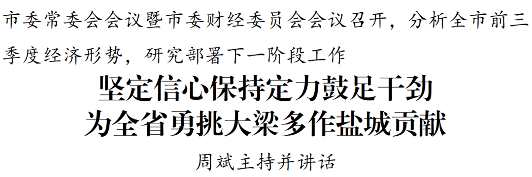 10月21日,市委常委会会议暨市委财经委员会会议召开,深入学习贯彻习近平总书记关于做好经济工作的重要指示和对江苏工作重要讲话精神,认真落实省委常委会会议暨省委财经委员会会议要求,分析全市前三季度经济形势,研究部署下一阶段工作。市委书记周斌主持会议并讲话。
