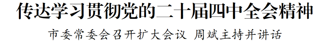 10月27日,市委常委会召开扩大会议,传达学习贯彻党的二十届四中全会精神,全面落实省委要求,研究部署我市学习贯彻落实工作。市委书记周斌主持并讲话。