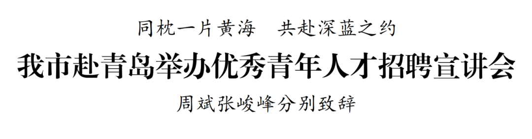张峻峰在致辞时说,盐城素有“东方湿地、黄海明珠”的美誉,海洋资源禀赋突出,发展潜力巨大。近年来,中国海洋大学与盐城通过共建引才工作站,在打造海洋人才高地、培育海洋新质生产力等领域开展全方位、深层次合作。这次人才招聘宣讲会,是盐城精准助力学校毕业生高质量充分就业的积极举措。希望各位同学充分了解盐城,牢牢把握机遇,找到心仪岗位,在这片发展热土上建功立业。期待双方进一步发挥各自优势,拓展合作内容,形成更多成果,为海洋强国、两省海洋强省建设作出新的更大贡献。
